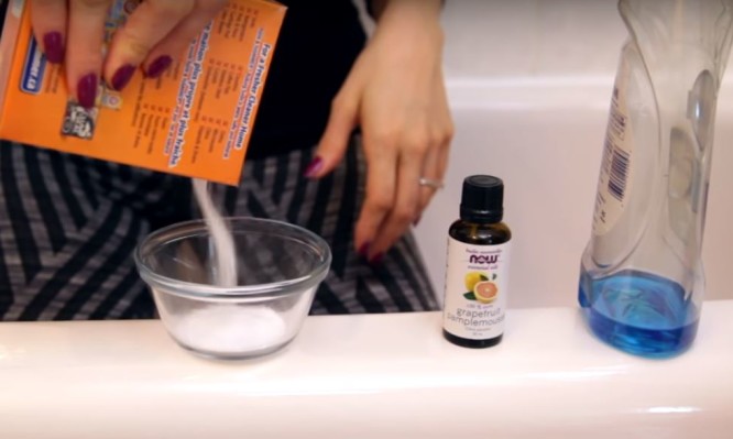 Το μόνο που χρειάζεται να κάνετε είναι να συνδυάσετε ίσα μέρη μαγειρικής σόδας και σαπουνιού για τα πιάτα (περίπου ¼ φλιτζάνι το καθένα) σε ένα μπολ. Στην συνέχεια προσθέστε περίπου 10 σταγόνες αιθέριο έλαιο και ανακατέψτε. Το μείγμα αυτό δεν θα κρατήσει για πολύ καιρό, γι’ αυτό μην κάνετε υπερβολική ποσότητα.