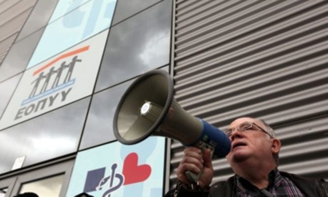 Ας μιλήσουν ξεκάθαρα και να πουν ότι σχεδιάζουν τις απολύσεις των γιατρών του ΕΟΠΥΥ για να συμπληρώσουν τον απαραίτητο αριθμό στην Τρόικα”.