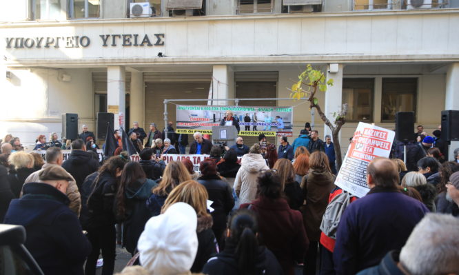 Δείτε φωτογραφίες από τη συγκέντρωση στο υπουργείο Υγείας: