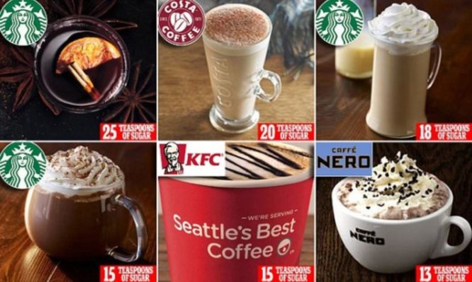 Αφού έκαναν έρευνα για 131 ροφήματα γνωστών εταιρειών, μας ενημερώνουν για τις κουταλιές ζάχαρη που περιέχουν και αφήνουν σε εμάς την απόφαση! Ας ξεκινήσουμε από τα πολύ βασικά. Κάθε κουταλάκι ζάχαρη περιέχει 20 θερμίδες. Ωραία μέχρι εδώ. Ας κάνουμε μια πράξη για το ρόφημα «θερμιδική βόμβα» των Starbucks Hot Mulled. 25 κουταλάκια ζάχαρη επί 20 θερμίδες. Μιλάμε για 500 θερμίδες στην καθισιά μας απλά με ένα ρόφημα!