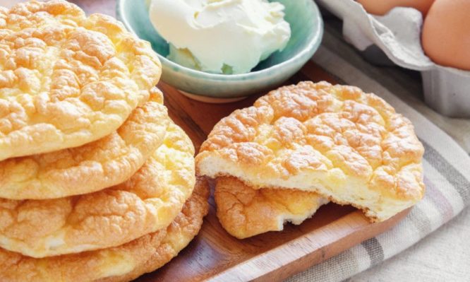 Είναι το αγαπημένο ψωμί-σύννεφο ή αλλιώς cloud-bread! Είναι ελαφρύ, αφράτο, και δεν χρειάζεται πολλά υλικά. Για την ακρίβεια, δεν θέλει ούτε αλεύρι, ούτε μαγιά, ούτε ζάχαρη ή αλάτι! Χρειάζεται μόνο τρία απλά υλικά και είναι ιδανική επιλογή ακόμα και για όσους ακολουθούν διατροφή Keto ή Paleo, αλλά και για όσους απλά θέλουν να προσέξουν λιγάκι.