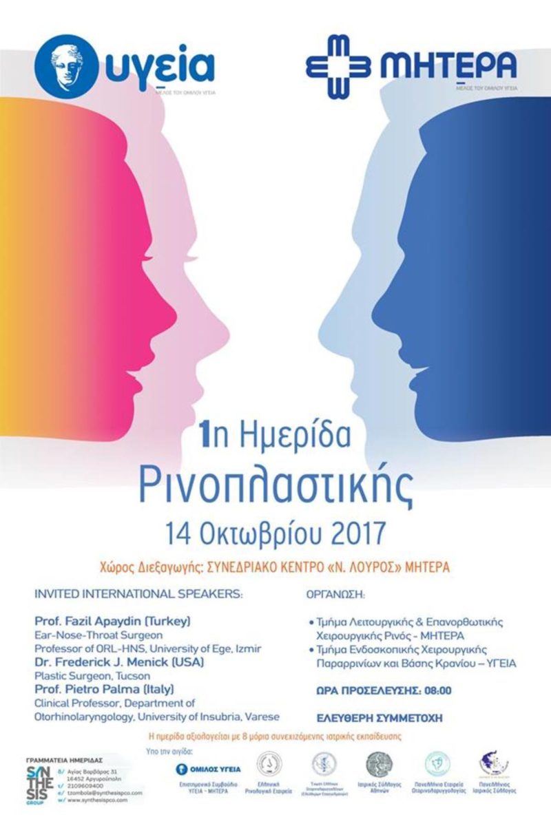 Την ημερίδα θα τιμήσουν με την παρουσία τους εξέχοντες Έλληνες ομιλητές, καθώς και οι παγκοσμίως γνωστοί καθηγητές Pietro Palma, Fazil Apaydin και Frederick Menick. Οι τελευταίοι θα παρουσιάσουν όλα τα νέα δεδομένα για τη Ρινοπλαστική, για πρώτη φορά στην Ελλάδα.