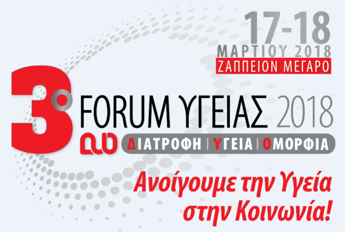 Αν η Υγεία, η Διατροφή και η Ομορφιά είναι στις βασικές σας προτεραιότητες, σας περιμένουμε στο Ζάππειο Μέγαρο στις 17 & 18 Μαρτίου και στο Συνεδριακό Κέντρο ‘’Ιωάννης Βελλίδης’’ στις 24 & 25 Νοεμβρίου στη Θεσσαλονίκη, αφού για πρώτη φορά φέτος, το FORUM ΥΓΕΙΑΣ βάζει σαν στόχο την πρόληψη και στη Θεσσαλονίκη!