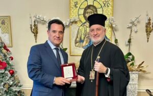 Τέλος, ο Υπουργός Υγείας Άδωνις Γεωργιάδης επισκέφθηκε τον Σεβασμιότατο Αρχιεπίσκοπο Αμερικής κ.κ. Ελπιδοφόρο, όπου τον ενημέρωσε για το περιεχόμενο και τα αποτελέσματα των επαφών που πραγματοποίησε στις ΗΠΑ, ενώ έλαβε την ευλογία του και αντάλλαξαν εορταστικές ευχές ενόψει των Χριστουγέννων.
