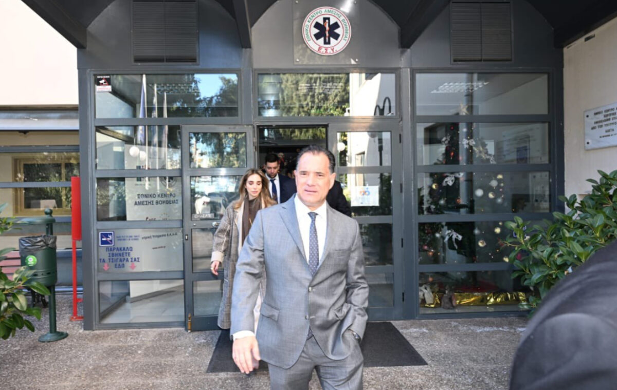 O υπουργός Υγείας Άδωνις Γεωργιάδης, συνοδευόμενος από τον υφυπουργό Μάριο Θεμιστοκλέους, ξεκίνησε τις επισκέψεις του για την Πρωτοχρονιά από το ΕΚΑΒ.