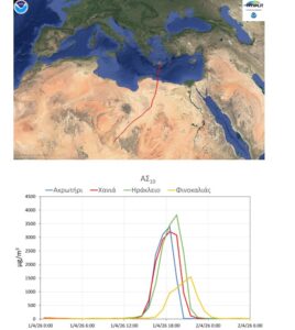 Οι άνεμοι μετέφεραν μέσα σε σύντομο χρονικό διάστημα μεγάλες ποσότητες σκόνης από τις ερημικές περιοχές της ανατολικής Λιβύης προς το νησί, ενώ οι μετρήσεις που καταγράφηκαν από το Δίκτυο «ΣΧΕΔΙΑ» στην Κρήτη.