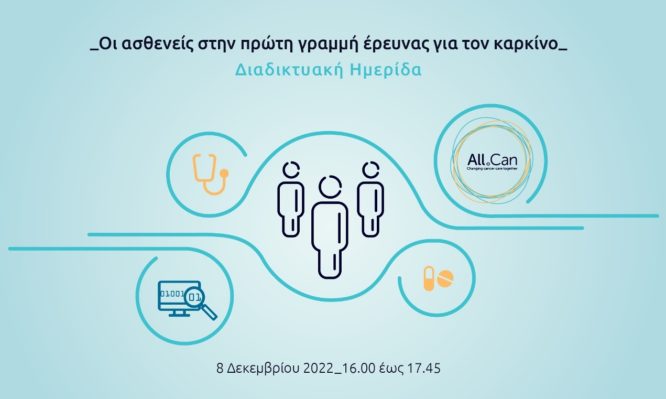Στη σημασία της ενεργής συμμετοχής των ογκολογικών ασθενών σε όλα τα στάδια των ερευνών για τον καρκίνο ήταν αφιερωμένη πρόσφατη επιστημονική ημερίδα της All.Can Greece.