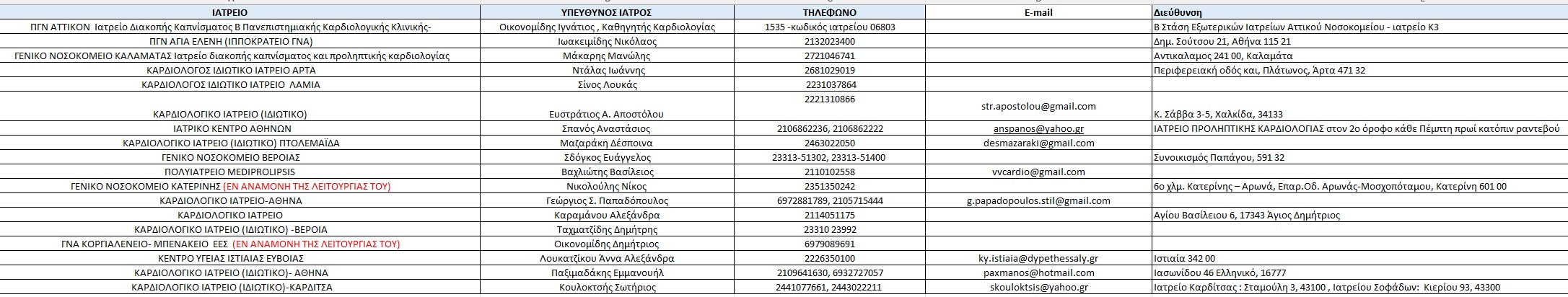 Συγκεκριμένα, τα Καρδιολογικά Ιατρεία διακοπής καπνίσματος λειτουργούν σε δημόσιες δομές υγείας (καρδιολογικές κλινικές) και σε ιδιωτικά καρδιολογικά ιατρεία, ως αποτέλεσμα της προσπάθειας της Ελληνικής Καρδιολογικής Εταιρείας και της ΟΕ Πρόληψης & Αποκατάστασης της ΕΚΕ για τη διεπιστημονική και ολοκληρωμένη εκπαίδευση των Καρδιολόγων στη Διακοπή του Καπνίσματος.