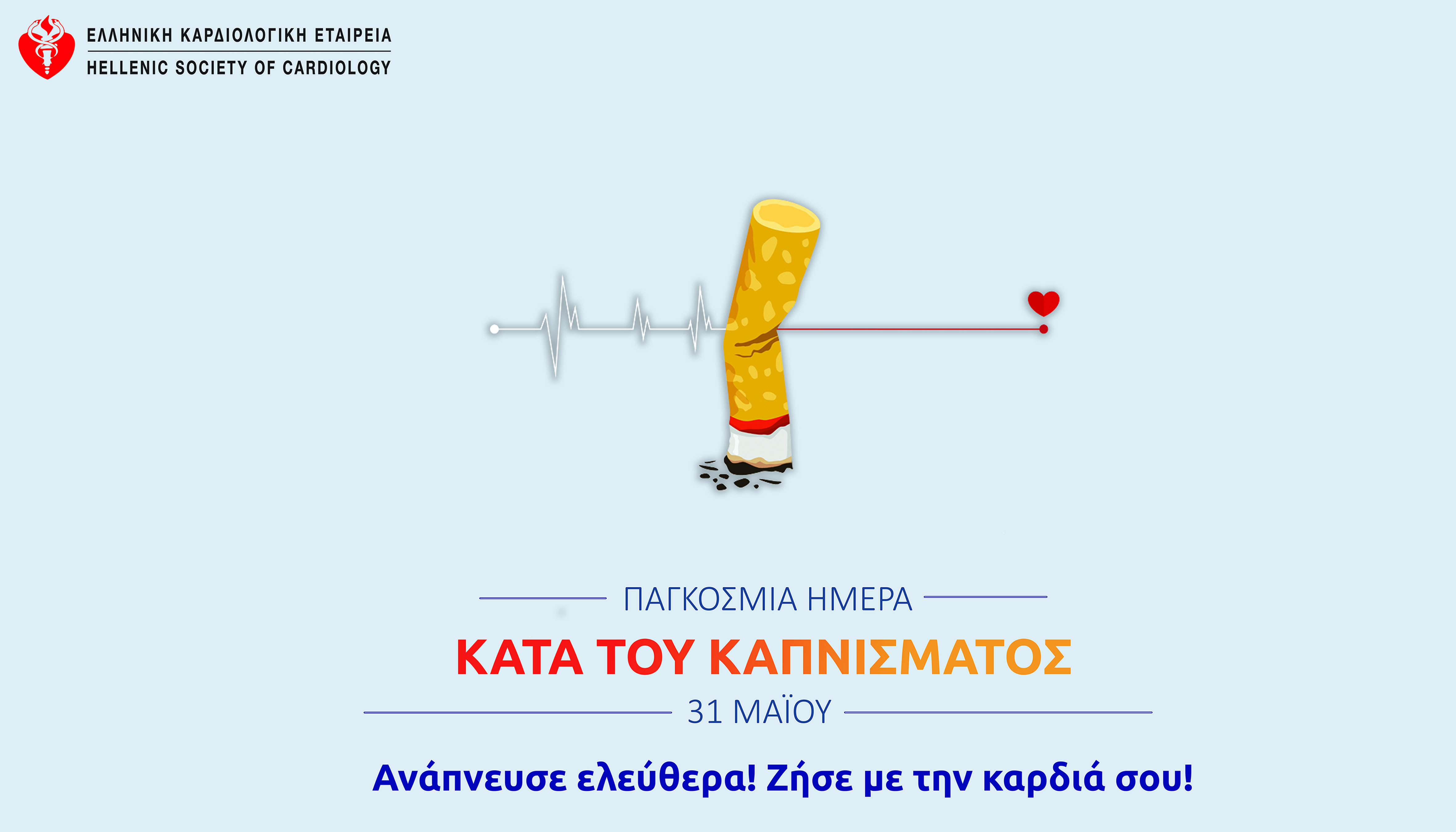 Η Ελληνική Καρδιολογική Εταιρεία καλεί τους πολίτες να απευθυνθούν στα Καρδιολογικά Ιατρεία Διακοπής Καπνίσματος αλλά και κάθε άλλη υπάρχουσα δομή στα νοσοκομεία και τις υγειονομικές δομές της χώρας για τη διακοπή του καπνίσματος, με κύριο σύνθημα: