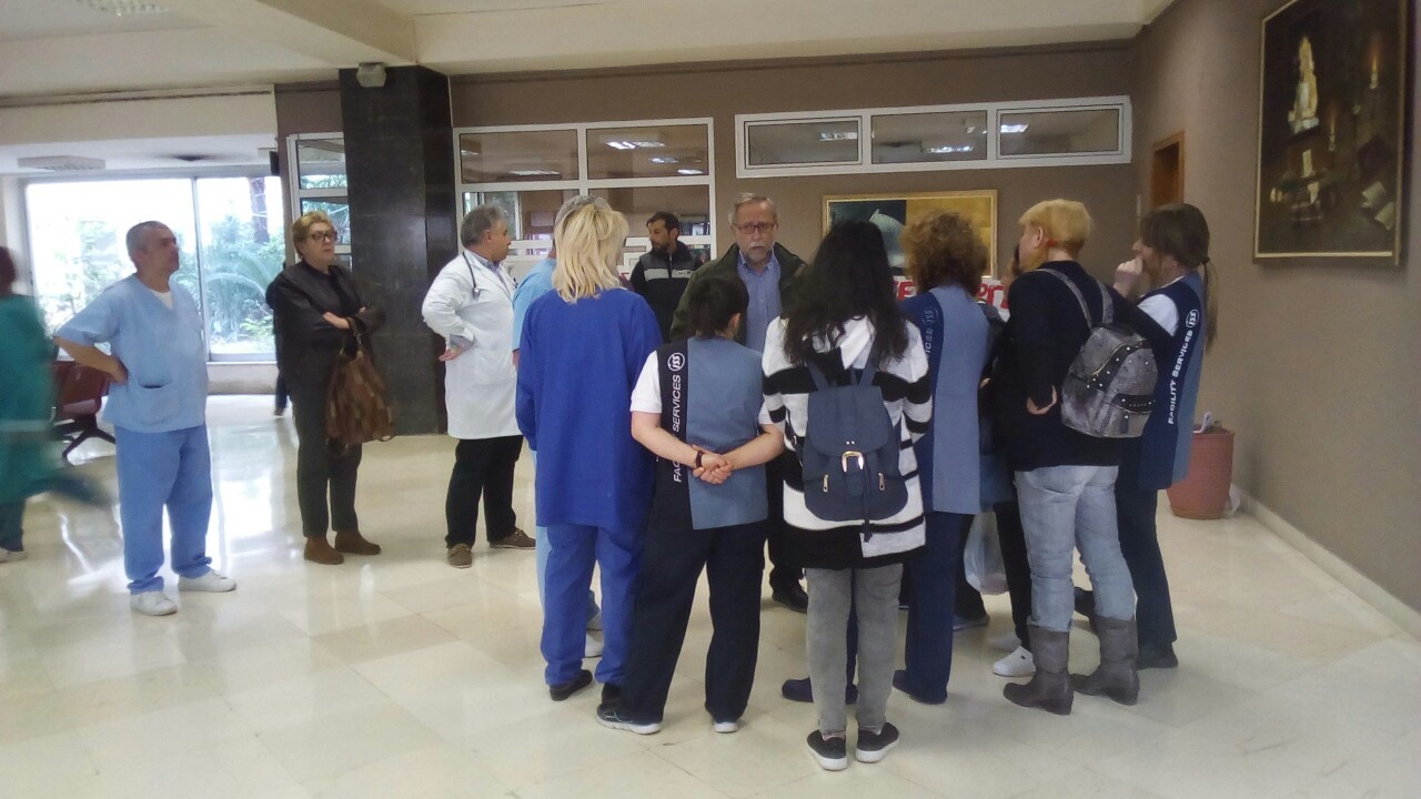 Κατά την εισβολή των εργαζομένων στα γραφεία της διοίκησης, ζητώντας εξηγήσεις η υποδιοικήτρια δήλωσε αναρμόδια για το γεγονός, ότι δεν προσμετρήθηκε η προϋπηρεσία δεκάδων εργολαβικών εργαζομένων και πέταξε το μπαλάκι στον ΑΣΕΠ. Ακολούθησε τηλεφωνική επικοινωνία συνδικαλιστών του ΠΑΜΕ με τον υπουργό Υγείας Ανδρέα Ξανθό, ο οποίος δεσμεύτηκε να επανεξετάσει το ζήτημα με τη νομική υπηρεσία του υπουργείου.