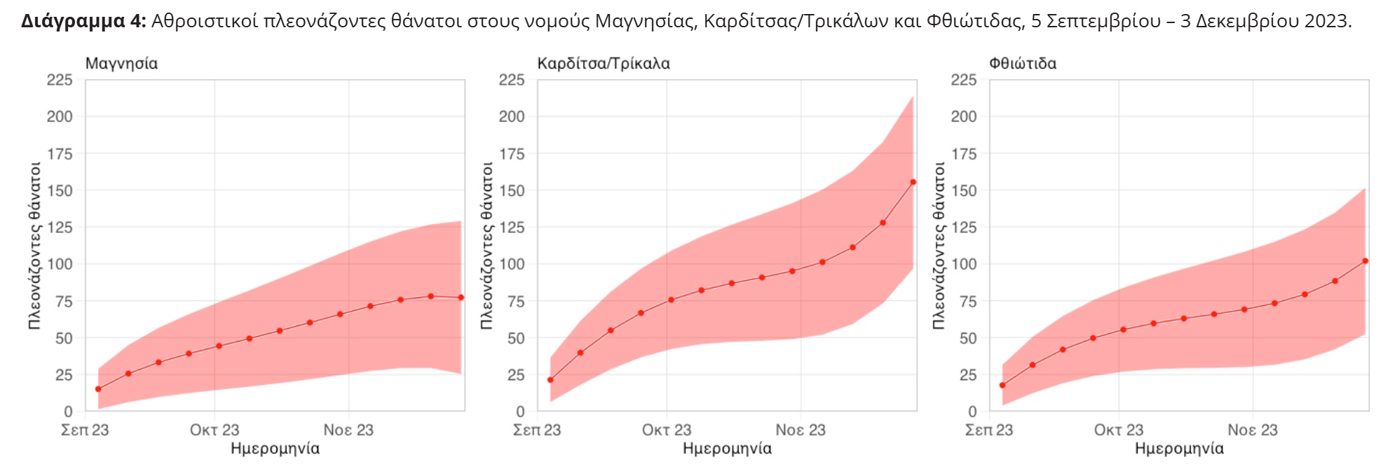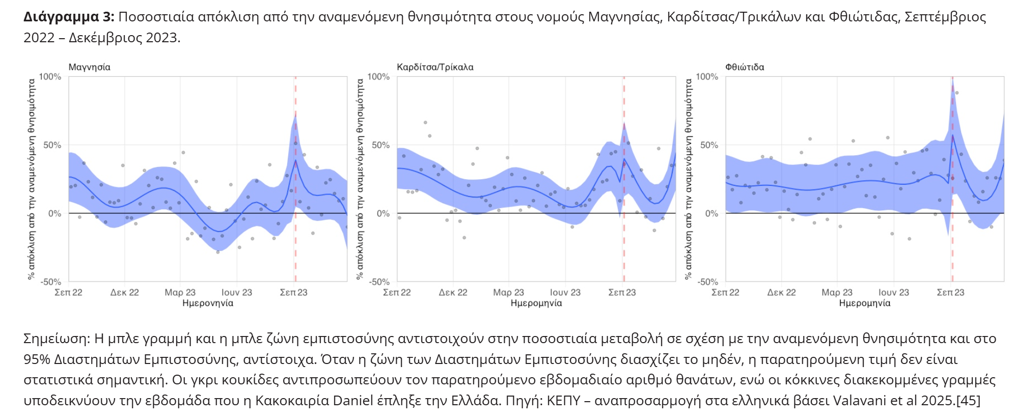 - Στη Μαγνησία η θνησιμότητα αυξήθηκε κατά 39% την πρώτη εβδομάδα της καταστροφής, με 78 επιπλέον θανάτους στο τρίμηνο.