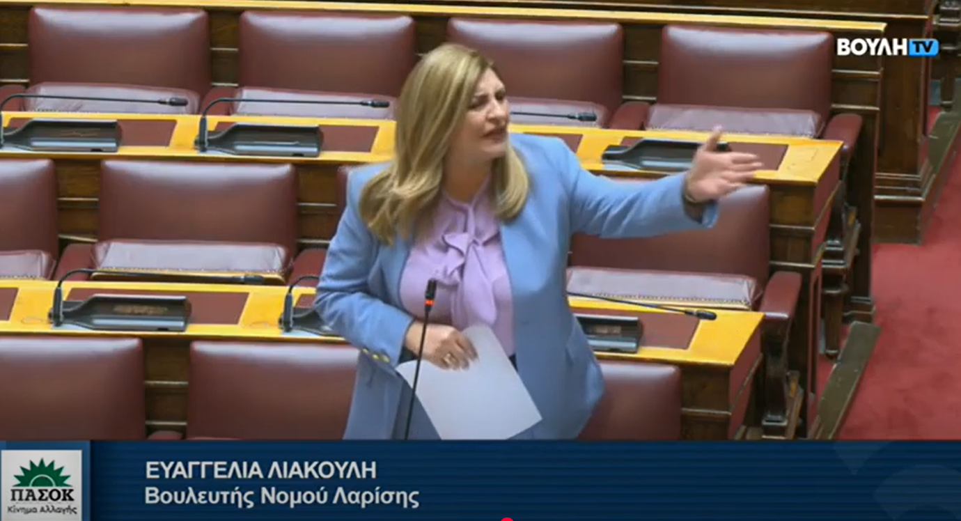 «Μιλάμε για έγκλημα, όχι για φυσική καταστροφή», κατήγγειλε από το βήμα της Βουλής παρουσιάζοντας στις 12/05/2025 σε επίκαιρη ερώτησή της τα στοιχεία μελέτης, η βουλευτής Λάρισας του ΠΑΣΟΚ, Ευαγγελία Λιακούλη.