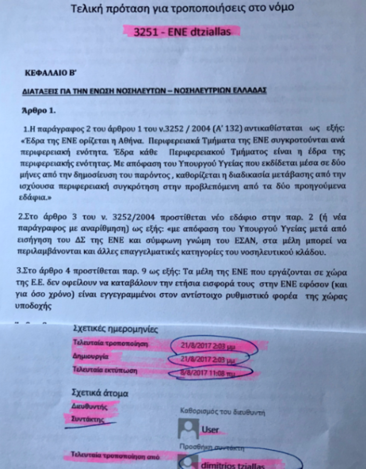 Όπως φαίνεται από ένα έγγραφο που φέρνει σήμερα στη δημοσιότητα το iatropedia, την σύνταξη αυτού του σχεδίου νόμου είχε κάνει ένα πρόσωπο τον περασμένο Αύγουστο, που η έρευνά μας απέδειξε ότι είναι όντως νοσηλευτής ανώτερης εκπαίδευσης και πρόεδρος της ΕΣΑΝ, δηλαδή ένας αρμόδιος να έχει άποψη για το θέμα. Μέχρι εδώ καλά! Πλην όμως η ηγεσία του ΥΥΚΑ το έβαλε στην διαβούλευση ένα μήνα μετά μιλώντας μόνο με ημέτερους, χωρίς να αλλάξει ούτε …κόμμα. Τόσο πολύ συμφωνεί μαζί του ή δεν το διάβασε καν; Και γενικά μήπως θα έπρεπε να αποτελέσει αντικείμενο δημοσιογραφικής έρευνας το …που γράφονται τα νομοσχέδια του υπουργείου Υγείας και από ποιους;