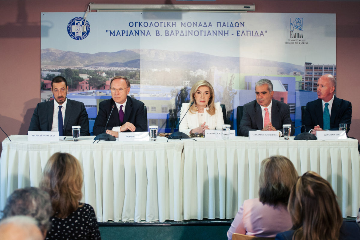 Τέλος μίλησε ο κύριος Raymond King, ο οποίος αναφέρθηκε στη μεγάλη πρόοδο που έχει σημειωθεί στη μετεκπαίδευση ιατρών και νοσηλευτών της Ογκολογικής Μονάδας Παίδων, με ομάδες του Ογκολογικού που μεταβαίνουν στο Sick Kids, καθώς και με ομάδες του Sick Kids, που έρχονται εδώ, και επεσήμανε ότι παράλληλα προχωράει και η δημιουργία παιδιατρικής βάσης δεδομένων που θα συμβάλλει στην τεχνογνωσία των μεταμοσχεύσεων και τη βελτίωση των θεραπευτικών μεθόδων. «Ο παιδικός καρκίνος, είπε ο κύριος King, δεν έχει σύνορα, και για μας, στο Sick Kids Hospital είναι πολύ σημαντικό να συμβάλουμε στην υλοποίηση του οράματος της κυρίας Βαρδινογιάννη, που με τόσο πάθος το υπηρετεί, και χαιρόμαστε ιδιαίτερα που συνεργαζόμαστε με το νοσηλευτικό και ιατρικό προσωπικό της Ογκολογικής Μονάδας Παίδων, που επιτελούν ένα σπουδαίο έργο».