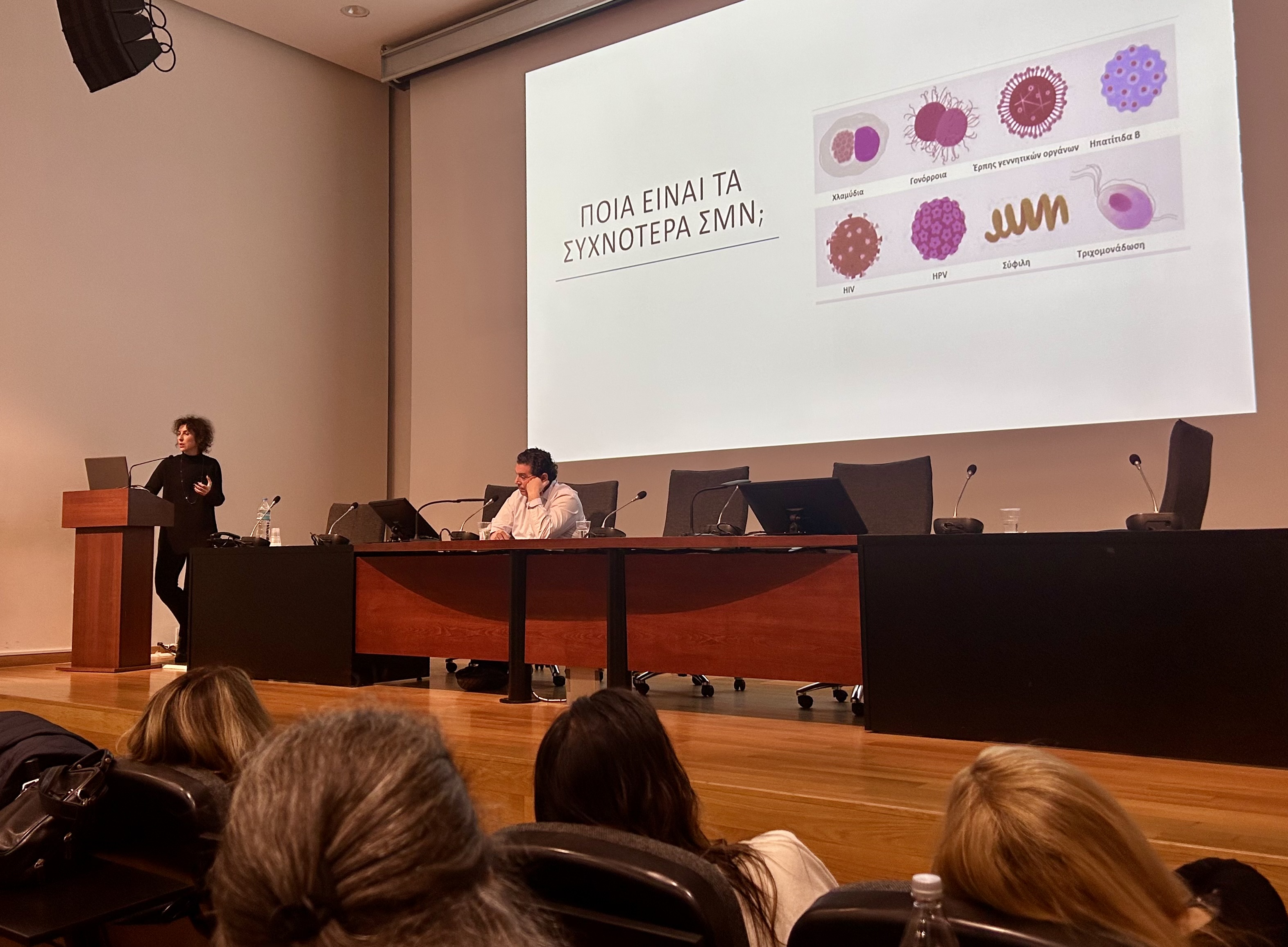 Για τα συχνότερα σεξουαλικώς μεταδιδόμενα νοσήματα (ΣΜΝ) μίλησε στους φοιτητές η Κατερίνα Κυριακού, Clinical Reader στη Β’ Δερματολογική Κλινική του ΑΠΘ. Πρόκειται για τα