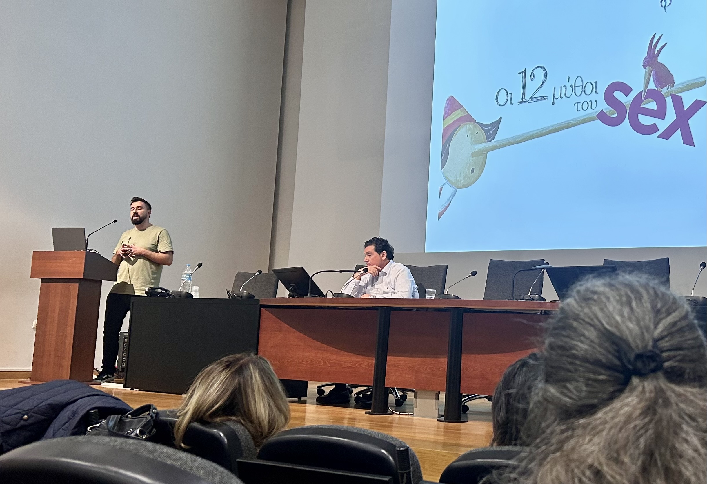 Διάλογο με τους φοιτητές για τους μύθους και την πραγματικότητα γύρω από το σεξ είχε ο επίκουρος καθηγητής Ουρολογίας του ΑΠΘ Ιωάννης Μυκονιάτης, καταρρίπτοντας μέσα από τη βιβλιογραφία και τα ευρήματα μελετών στερεοτυπικές αντιλήψεις γύρω από τη σεξουαλική επιθυμία και ικανοποίηση ανδρών και γυναικών, τα κριτήρια επιλογής συντρόφων, τη σεξουαλική ζωή ζευγαριών μετά τη γέννηση παιδιού, την παρακολούθηση πορνογραφικού υλικού, τη σεξουαλική δραστηριότητα σε μεγάλη ηλικία κ.λπ.