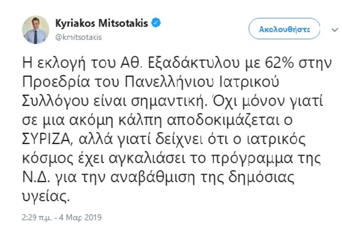 Δείτε παρακάτω την ανάρτηση του κ. Μητσοτάκη: