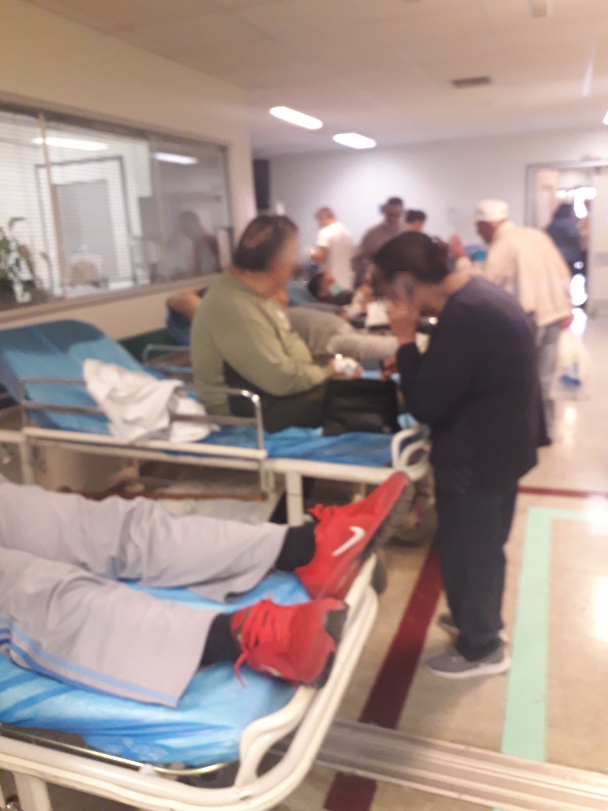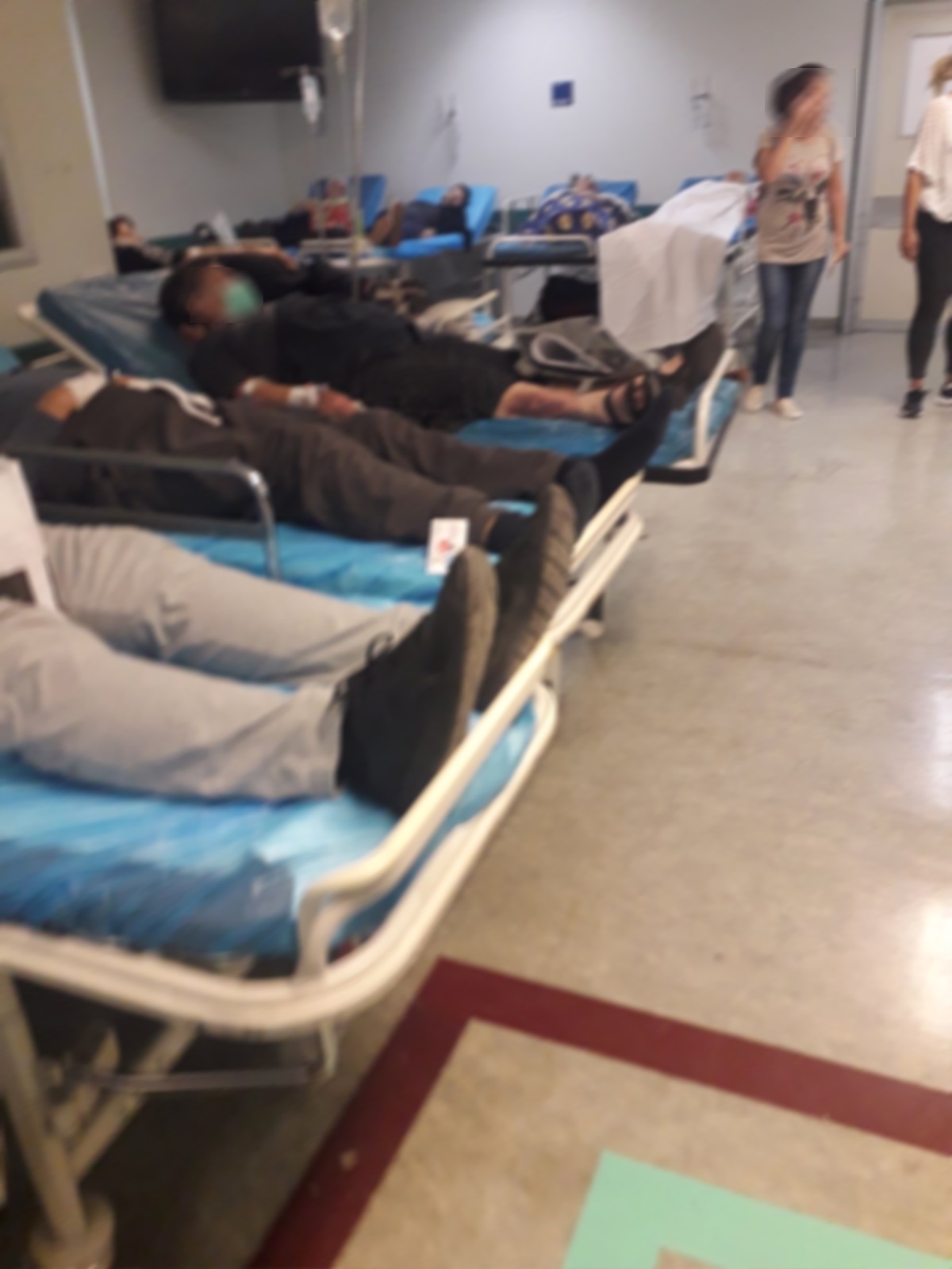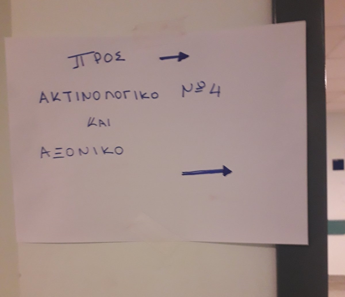 Οι ουρές αναμονής στα φορεία είναι τεράστιες, καθώς μεσολαβεί απόσταση από το Τμήμα Επειγόντων έως το κοντινότερο ακτινοδιαγνωστικό τμήμα του νοσοκομείου, στο οποίο πρέπει να μεταφερθούν οι ασθενείς ώστε να υποβληθούν στις επείγουσες διαγνωστικές εξετάσεις, δηλαδή σε ακτινογραφία και αξονική τομογραφία. Ελλείψει τραυματιοφορέων μάλιστα, πολλοί συγγενείς αναγκάζονται να μετακινούν οι ίδιοι τα φορεία και τα αμαξίδια μέχρι το ακτινοδιαγνωστικό τμήμα.