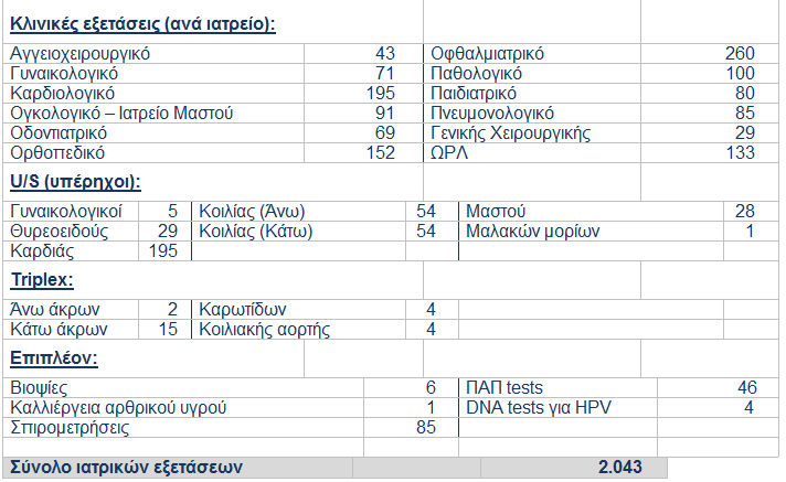 -Προληπτικές ιατρικές, αιματολογικές και μικροβιολογικές εξετάσεις των κατοίκων.