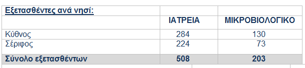Στα ανωτέρω νησιά διενεργήθηκαν: