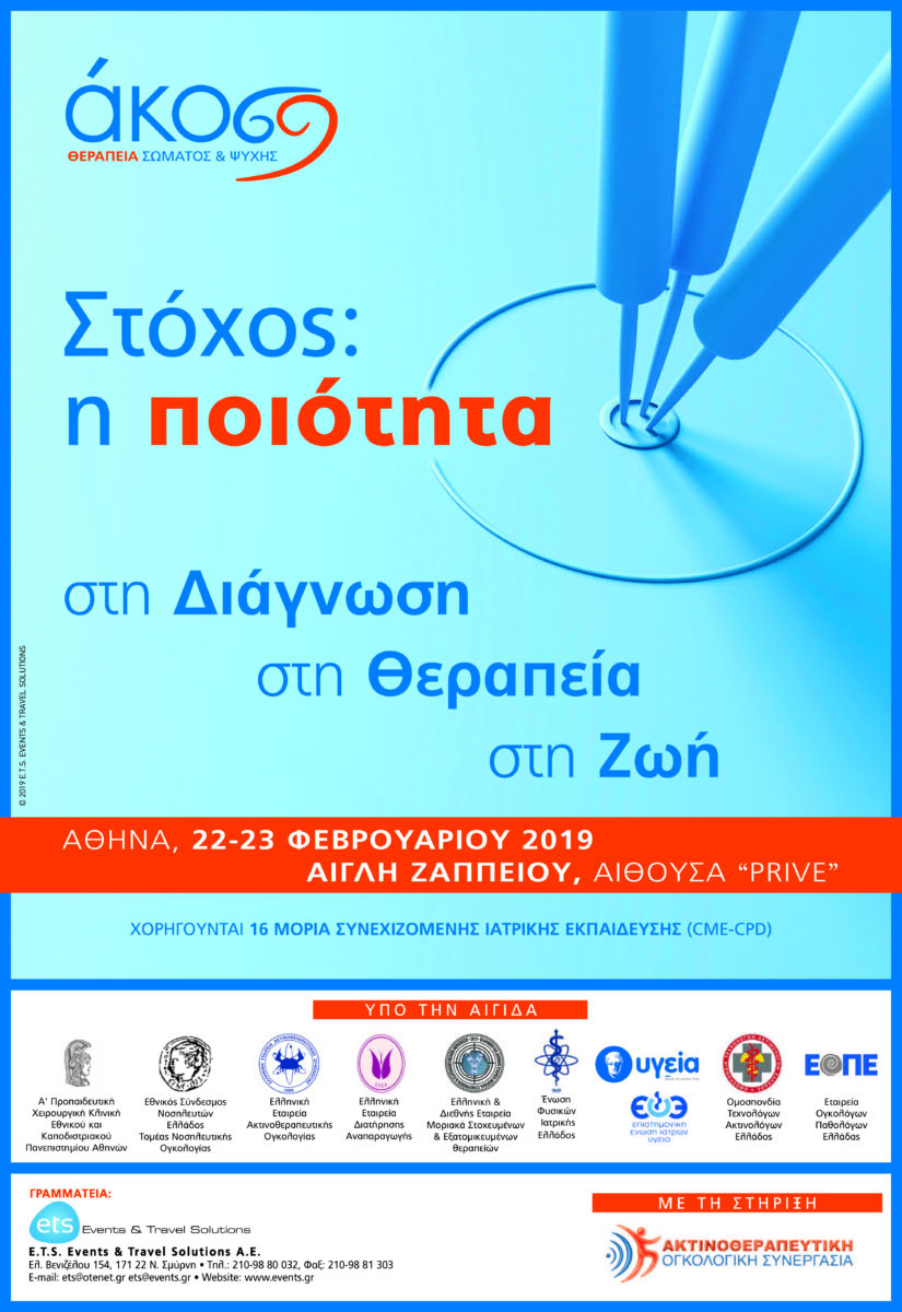 Σ’ όλες τις ειδικότητες που εμπλέκονται με τον ογκολογικό ασθενή η ποιότητα είναι μετρήσιμο μέγεθος και καθορίζεται από τις χαμηλές παρενέργειες των εφαρμοζόμενων θεραπειών και την υποστηρικτική φροντίδα που επιτυγχάνεται με τη διαμεσολάβηση και άλλων ειδικοτήτων (λογοθεραπευτές, ψυχολόγοι, φυσικοθεραπευτές, διατροφολόγοι κ.α) Το διήμερο συνέδριο θ’ αναδείξει τις επιμέρους πτυχές της ποιότητας, προς όφελος του ασθενή.