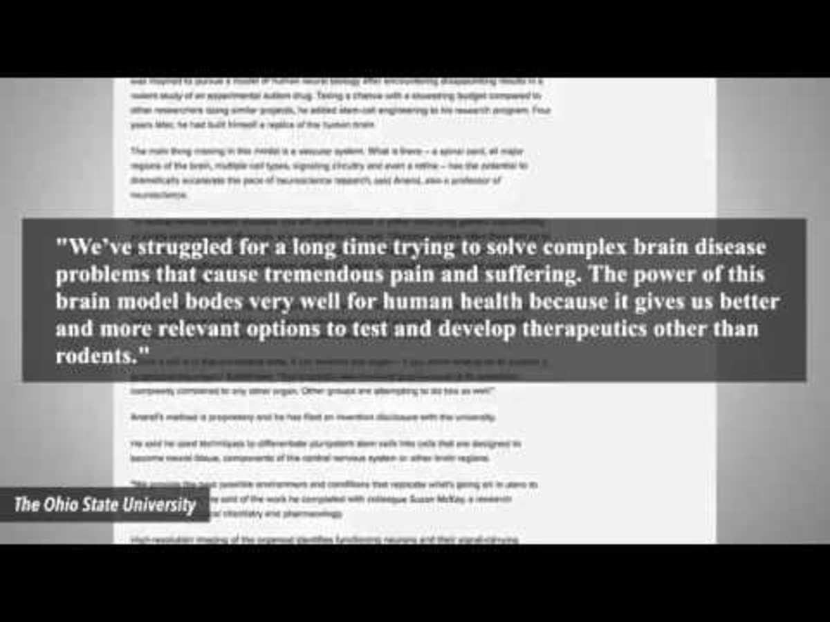 Σε μια παρουσίαση 18 Αυγούστου στο συνέδριο του αμερικανικού Στρατιωτικού Συστήματος Ερευνητικής Υγείας στο Fort Lauderdale της Φλόριντα ο Rene Anand, βιοχημικός και μέλος της ερευνητικής ομάδας από το πανεπιστήμιο του Οχάιο στο Columbus, είπε ο μικροσκοπικός τεχνητός εγκέφαλος έχει περίπου το μέγεθος γόμας μολυβιού και αναγνωρίσιμες δομές που αντιστοιχούν στο 99% από τα γονίδια που υπάρχουν στον ανθρώπινο εμβρυϊκό εγκέφαλο. Οι πλήρεις λεπτομέρειες πίσω από τις τεχνικές που χρησιμοποιήθηκαν από τους ερευνητές για την υποστήριξη των πολυδύναμων βλαστοκυττάρων προκειμένου να μετατραπούν σε αντίγραφο εγκεφάλου δεν έγιναν γνωστές. Αυτά τα κύτταρα στη συνέχεια τροποποιήθηκαν για να αναπτύξουν τα διαφόρων τύπων κύτταρα και κυκλώματα του εγκεφάλου.