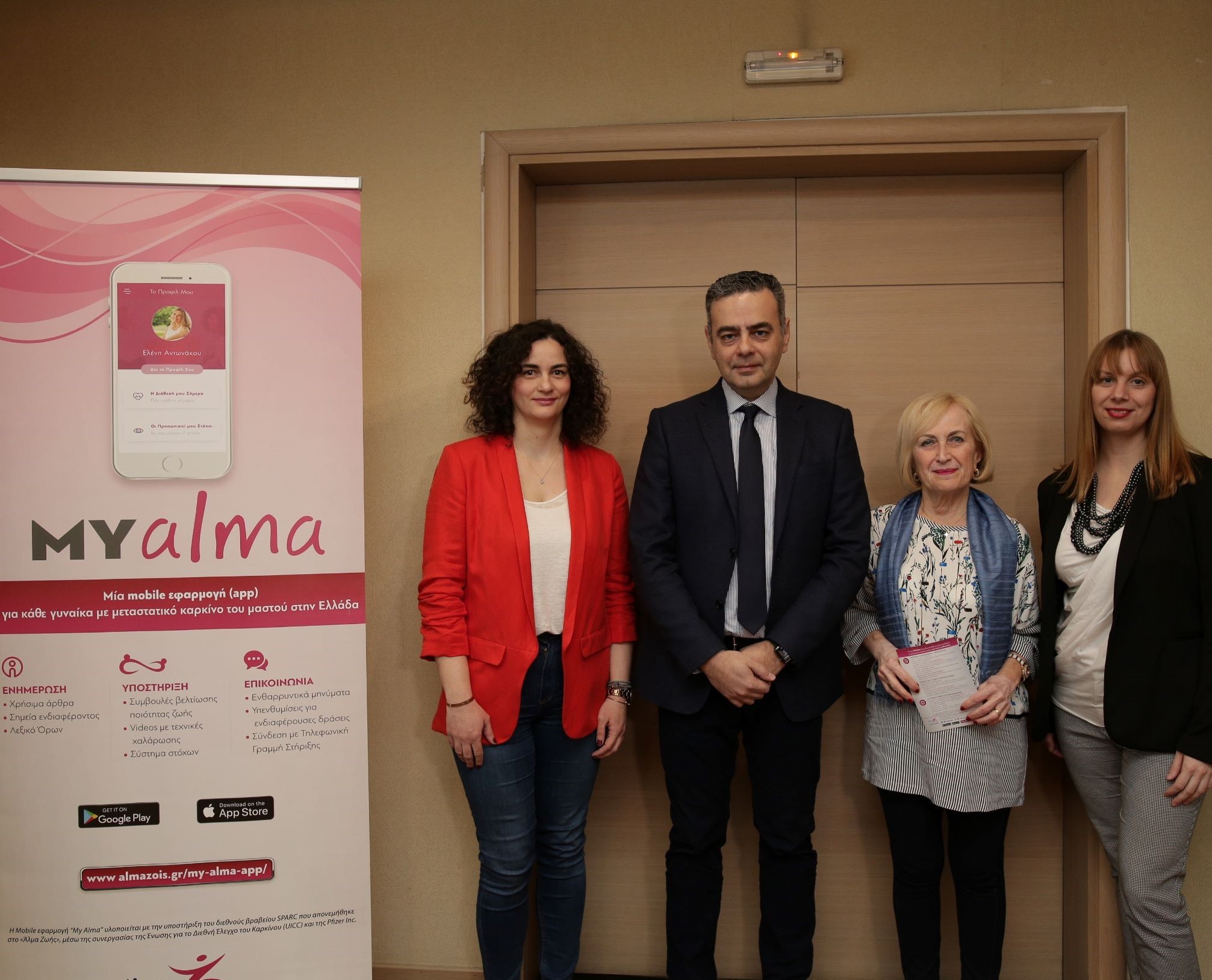 Πρόκειται για το mobile app «ΜΥ alma», την εφαρμογή που -κάθε γυναίκα που αντιμετωπίζει το πρόβλημα του μεταστατικού καρκίνου του μαστού- μπορεί να χρησιμοποιεί καθημερινά για να βρίσκει πρακτικές συμβουλές, αλλά και επικοινωνία με υποστηρικτικές δομές Υγείας, όπως νοσοκομεία και Ιατρεία πόνου. Μέσω της εφαρμογής επίσης, οι ενδιαφερόμενες γυναίκες μπορούν να λαμβάνουν τα νεότερα ιατρικά δεδομένα, χρήσιμες συμβουλές για τη διαχείριση των συναισθημάτων τους, αλλά και των ανεπιθύμητων ενεργειών της θεραπείας. Επίσης, να θέσουν στόχους, να επιβραβευτούν για τα επιτεύγματά τους και να δουν προτάσεις βελτίωσης της καθημερινότητάς τους.