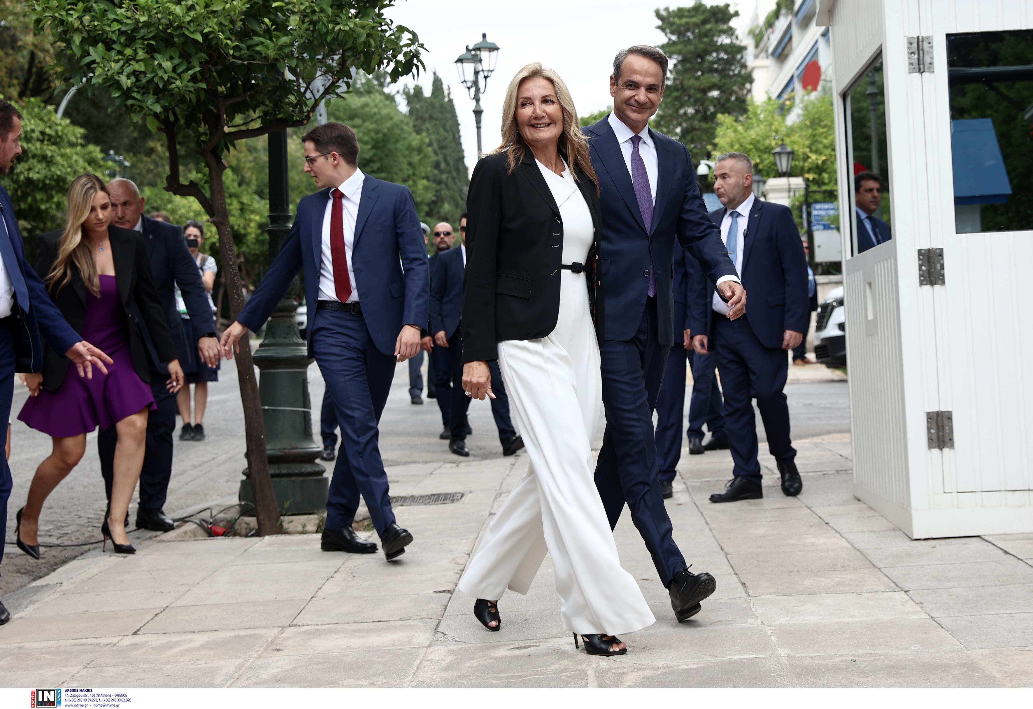Έφτασε στο Προεδρικό Μέγαρο ακριβώς στις 13:00 με την Μαρέβα και τα παιδιά τους, τον Κωνσταντίνο, τη Δάφνη και την Σοφία. Μάλιστα το ζευγάρι προχωρούσε χέρι – χέρι.