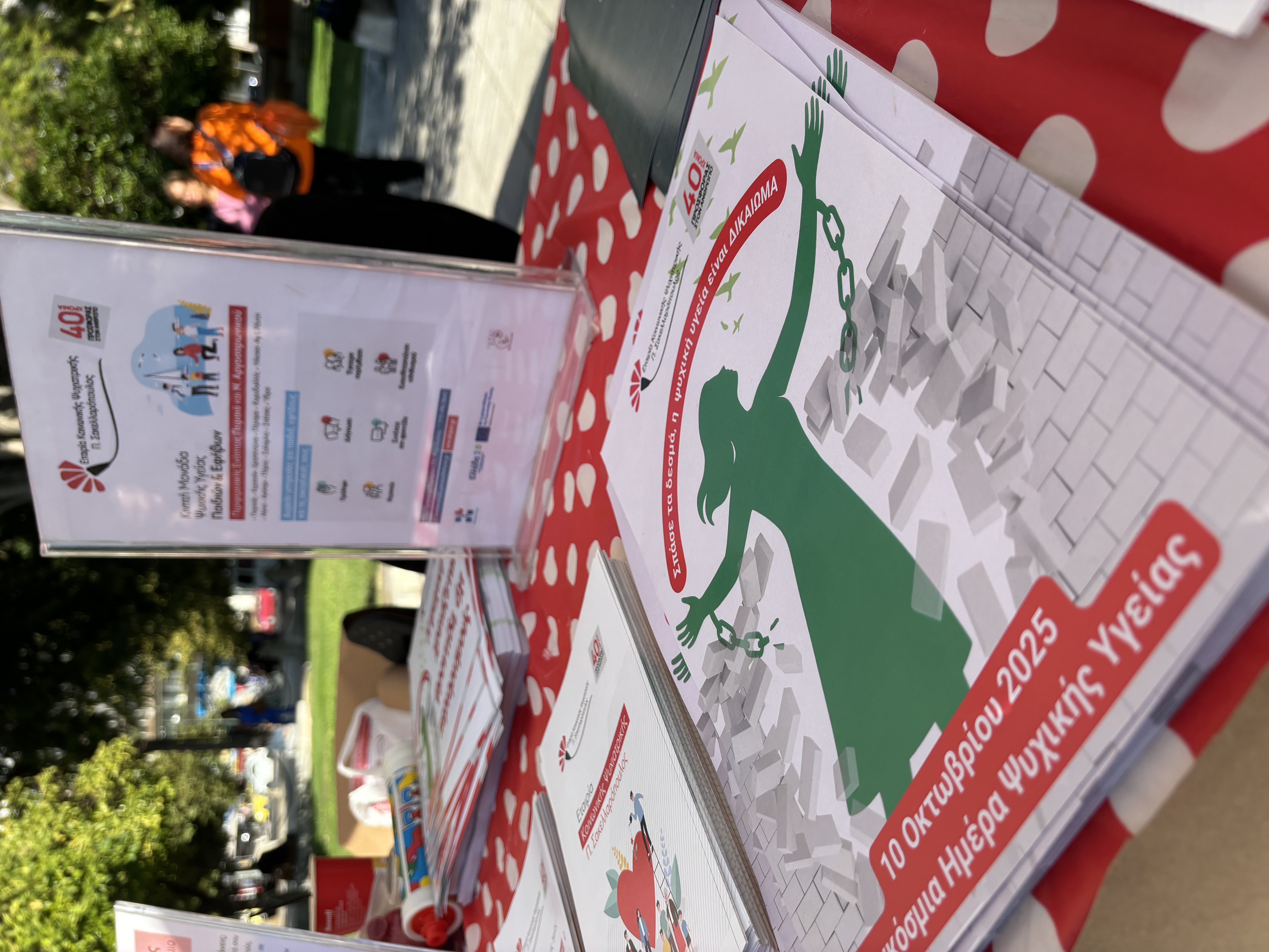 Το μήνυμα της φετινής Παγκόσμιας Ημέρας Ψυχικής Υγείας είναι «Σπάσε τα δεσμά, η ψυχική υγεία είναι ΔΙΚΑΙΩΜΑ» και είναι εμπνευσμένο από τους στίχους του τραγουδιού για την ψυχική υγεία, το οποίο γράφτηκε, μελοποιήθηκε και τραγουδήθηκε από τους ίδιους τους λήπτες των υπηρεσιών μας.