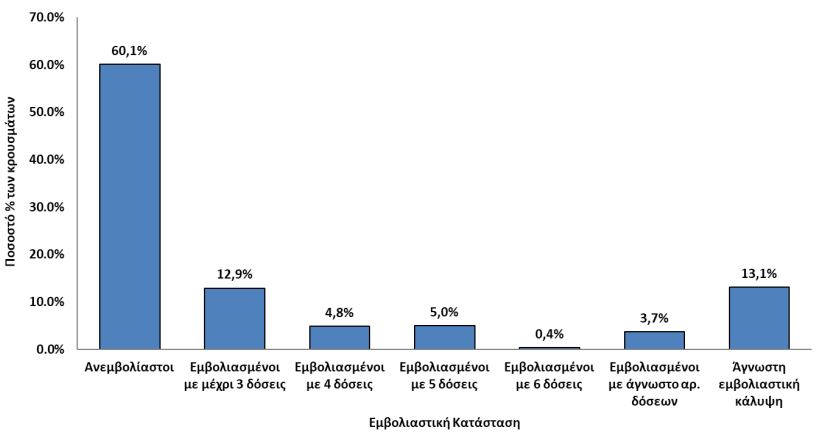 - 19 (3,7%) ήταν εμβολιασμένοι με άγνωστο αριθμό δόσεων