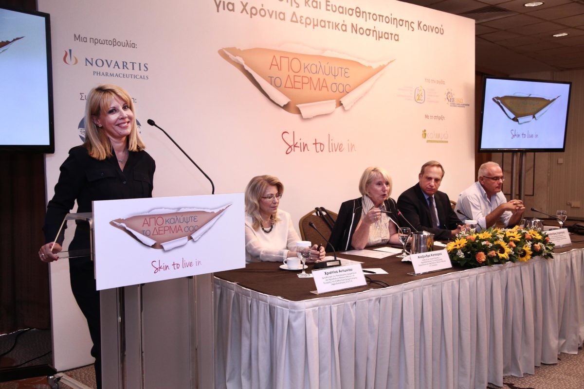 Η εκστρατεία «Αποκαλύψτε το Δέρμα σας – Skin to live in» αποτελεί μια σημαντική πρωτοβουλία της Novartis Hellas που τελεί υπό την αιγίδα της Ελληνικής Δερματολογικής και Αφροδισιολογικής Εταιρείας και της Ελληνικής Εταιρείας Αλλεργιολογίας και Κλινικής Ανοσολογίας, και φέρει τη στήριξη του Σωματείου Ασθενών με Ψωρίαση «Καλυψώ».