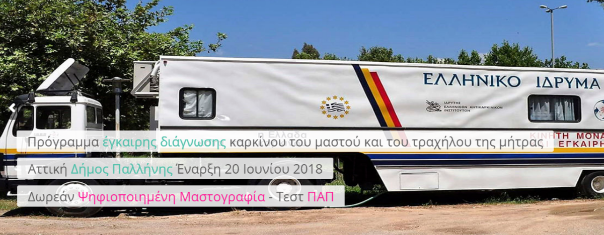 Ολοκληρώθηκε πρόγραμμα πληθυσμιακού ελέγχου για την πρόληψη κι έγκαιρη διάγνωση του καρκίνου του μαστού και του τραχήλου της μήτρας, με δωρεάν εξετάσεις (ψηφιοποιημένη μαστογραφία και τεστ ΠΑΠ) των γυναικών του Δήμου Παλλήνης.
