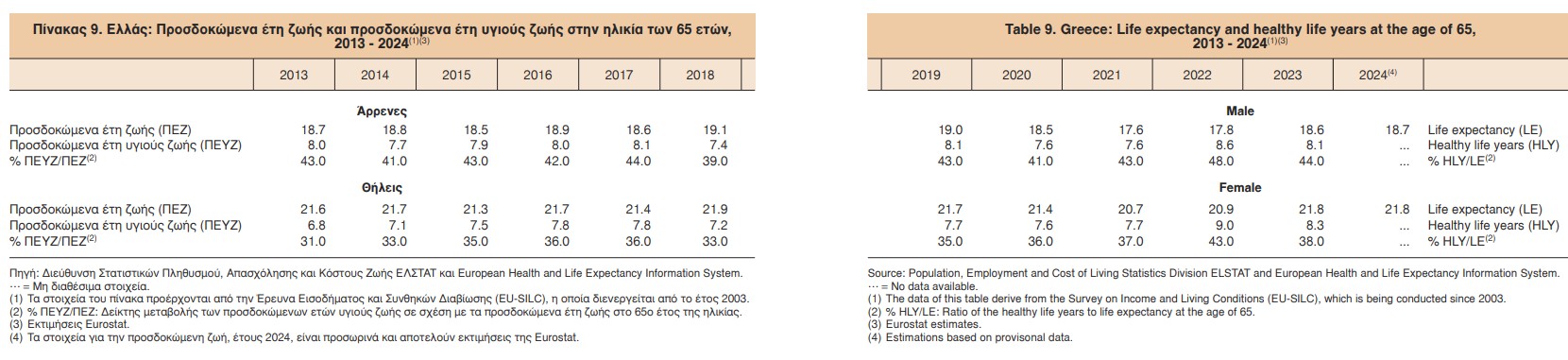 Για παράδειγμα, ένας άνδρας ηλικίας 65 ετών μπορεί να περιμένει ότι θα ζήσει άλλα 18,6 χρόνια, αλλά μόλις τα 8,1 από αυτά θα είναι απαλλαγμένα από περιορισμούς δραστηριότητας λόγω υγείας.