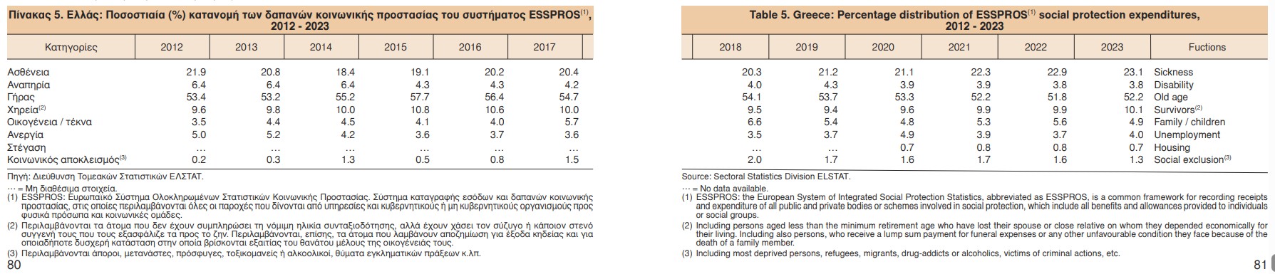 Η ανάλυση των δαπανών κοινωνικής προστασίας (σύστημα ESSPROS) επιβεβαιώνει τη δημογραφική πίεση.