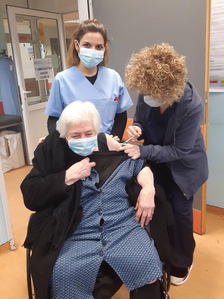 Στη Σάμο, το εμβόλιο έλαβε μια σχεδόν αιωνόβια γυναίκα, 97 ετών.