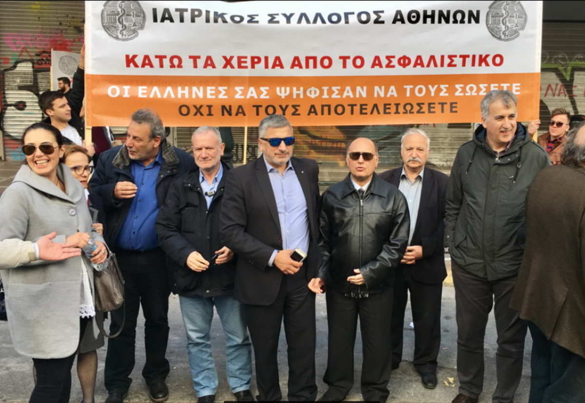«Ο Ιατρικός Σύλλογος Αθηνών συμμετέχει δυναμικά στο υγειονομικό μέτωπο και έχει δρομολογήσει ισχυρά ένδικα μέσα για την ανατροπή του ανθρωποκτόνου ασφαλιστικού νόμου. Είμαστε αποφασισμένοι να δώσουμε μάχη για ν αποτρέψουμε την εφαρμογή του. Ο ιατρικός κόσμος έχει συσπειρωθεί και με τις άλλες επιστημονικές ενώσεις και πρόκειται να δώσει ηχηρή απάντηση στις κυβερνητικές μεθοδεύσεις».