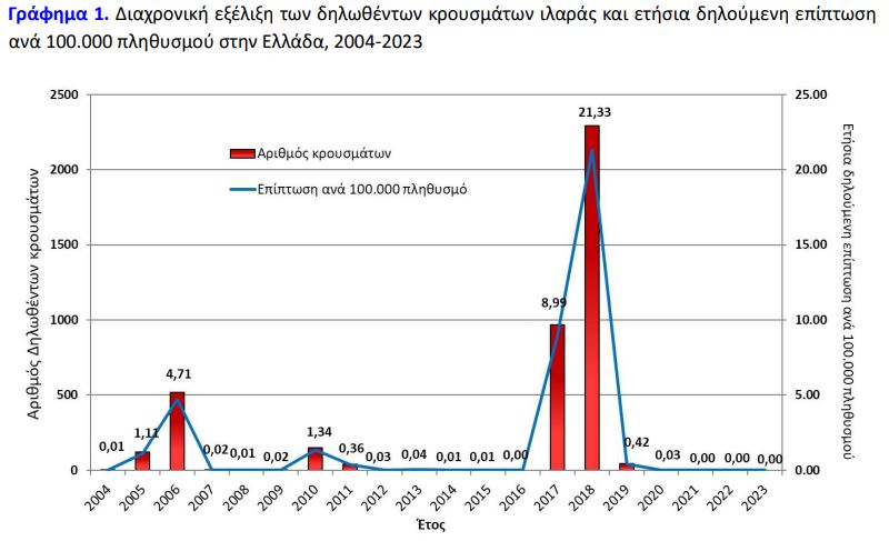 Να σημειωθεί πως η ιλαρά είναι υποχρεωτικώς δηλούμενο νόσημα, οπότε υπάρχουν λεπτομερή στοιχεία και από τις 3 επιδημίες που καταγράφηκαν στη χώρα μας κατά την χρονική περίοδο 2004-2023. Και συγκεκριμένα κατά τα έτη: