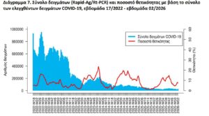 Η θετικότητα στην κοινότητα (δίκτυο επιτήρησης Sentinel ΠΦΥ) κινείται σε χαμηλά επίπεδα, ενώ παρουσίασε μείωση σε σχέση με την προηγούμενη εβδομάδα. Στα νοσοκομεία του δικτύου επιτήρησης SARI η θετικότητα παρουσίασε ανοδική τάση νωρίτερα σε σχέση με την περσινή περίοδο επιτήρησης, χωρίς να έχει φτάσει τη μέγιστη θετικότητα της περσινής περιόδου.