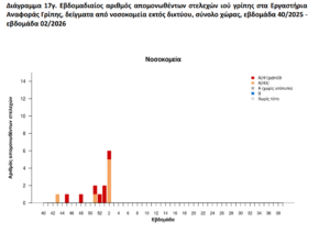 Οι νέες εισαγωγές γρίπης παρουσιάζουν ανοδική τάση. Την τελευταία εβδομάδα σημειώθηκε περαιτέρω αύξηση (871 νέες εισαγωγές έναντι 722 την εβδομάδα 01/2026). Καταγράφηκαν 15 νέα σοβαρά κρούσματα εργαστηριακά επιβεβαιωμένης γρίπης με νοσηλεία σε ΜΕΘ και οκτώ νέοι θάνατοι από εργαστηριακά επιβεβαιωμένη γρίπη.