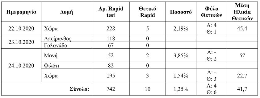 ΕΟΔΥ: Δείτε αναλυτικά τα κρούσματα που εντοπίστηκαν στη Νάξο ανάμεσα σε 742 rapid τεστ