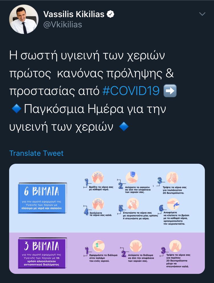Δείτε το μήνυμα του υπουργού Υγείας, Βασίλη Κικίλια για την Παγκόσμια Ημέρα Υγιεινής των χεριών: