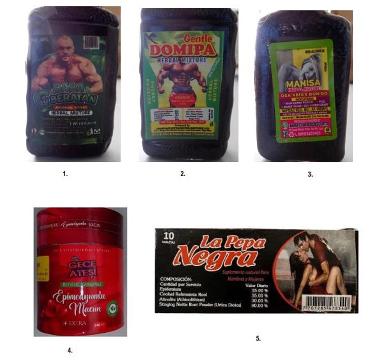 Ο ΕΟΦ ανακοινώνει ότι, έπειτα από ενημέρωση των αρμόδιων αρχών της Γερμανίας, Ισπανίας και της Ιταλίας και κατόπιν εργαστηριακού ελέγχου, τα προϊόντα βρέθηκαν να περιέχουν την μη επισημασμένη, δραστική φαρμακευτική ουσία σιλδεναφίλη, η οποία συνδέεται με ανεπιθύμητες ενέργειες ιδιαίτερα στο καρδιαγγειακό σύστημα, γεγονός που καθιστά την ανεξέλεγκτη χρήση επικίνδυνη για την υγεία του χρήστη.