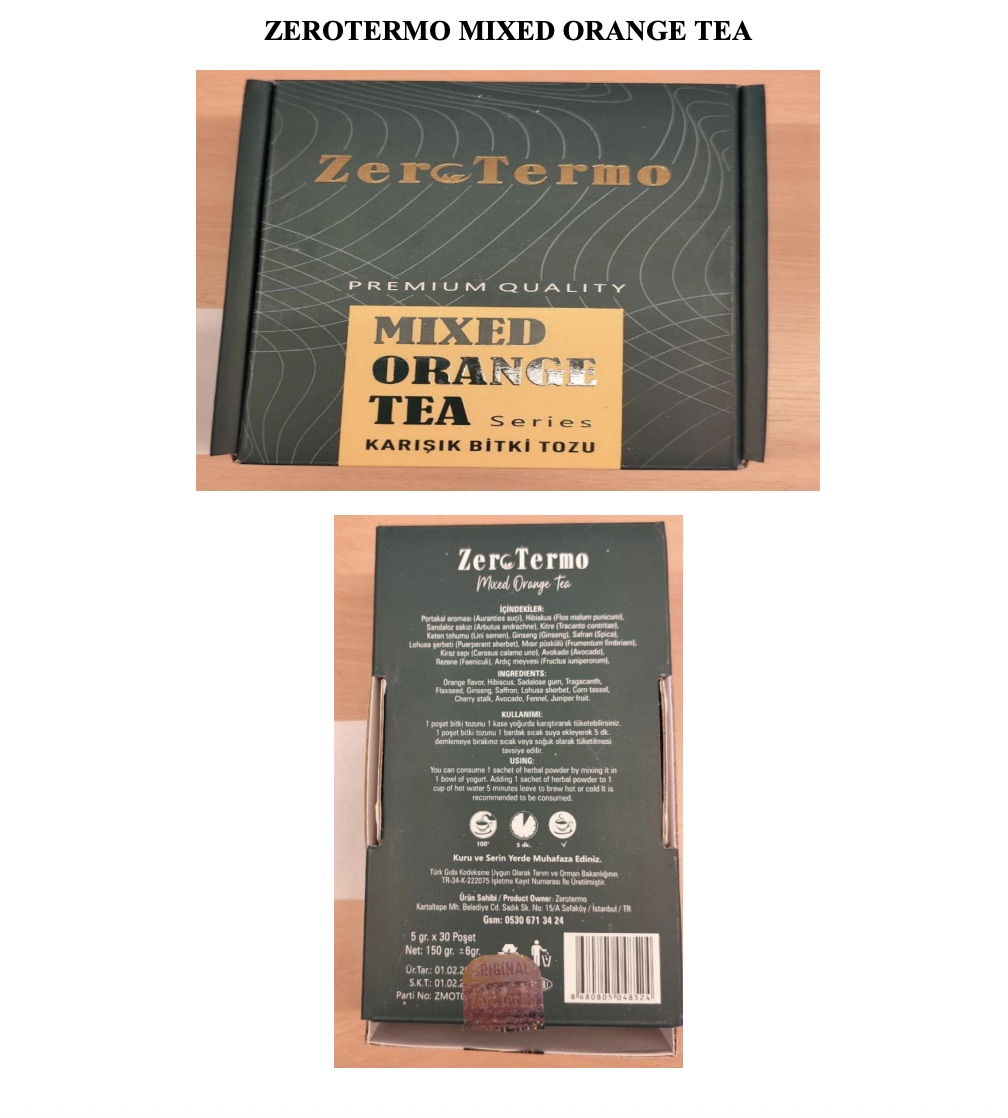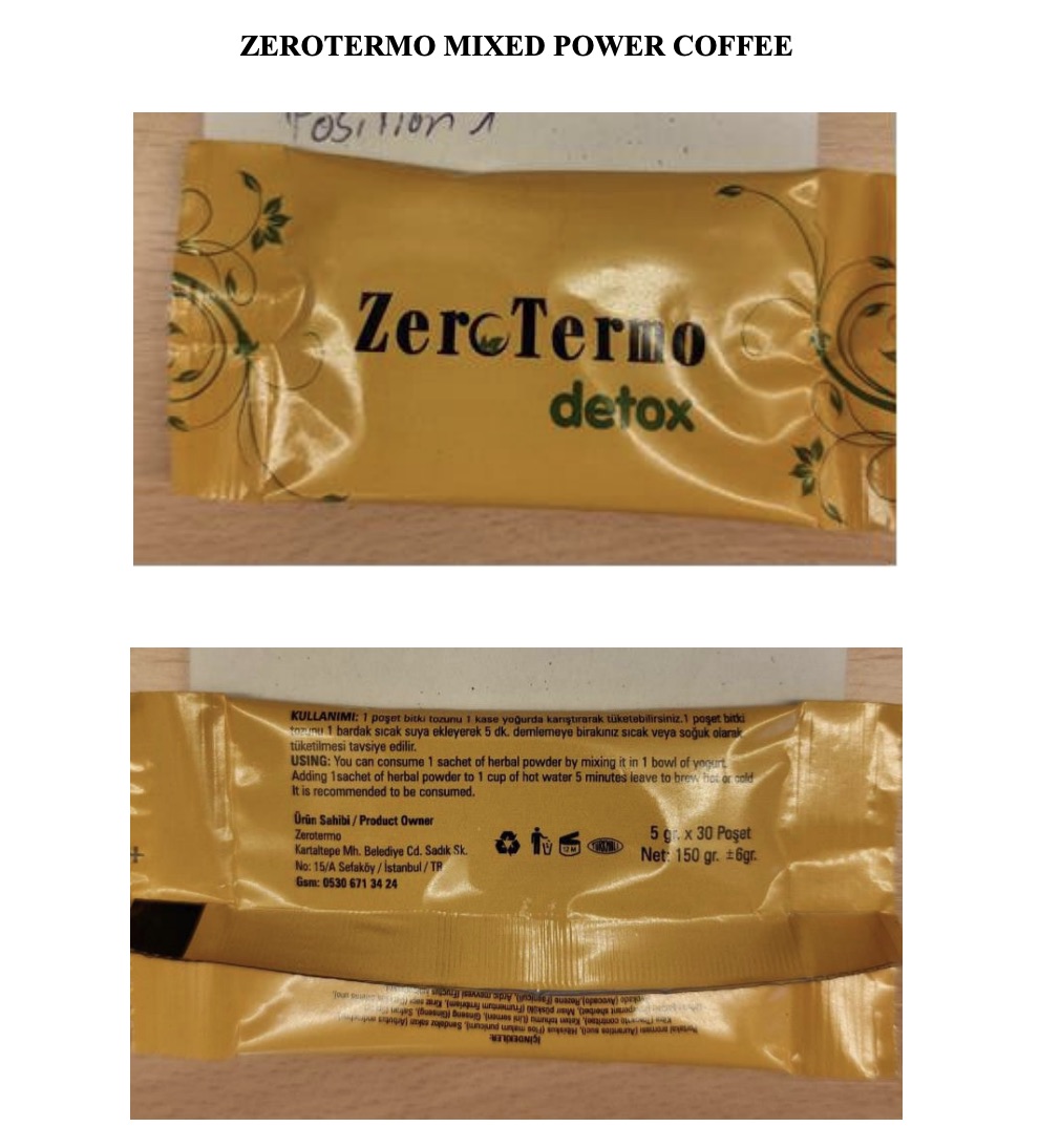 - τα σκευάσματα Zero Termo Mixed Orange tea και Zero termo chocolate τις δραστικές ουσίες σιβουτραμίνη (sibutramine) και σιλδεναφίλη (sildenafil).