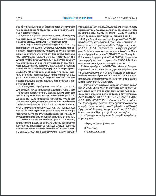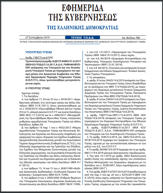 Επίσημο: Νέο Δ.Σ. στον ΕΟΠΥΥ – Δημοσιεύθηκαν τα ονόματα στην Εφημερίδα της Κυβερνήσεως