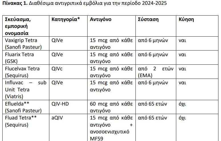Τα εμβόλια κατά της γρίπης που θα κυκλοφορήσουν φέτος είναι τα εξής: