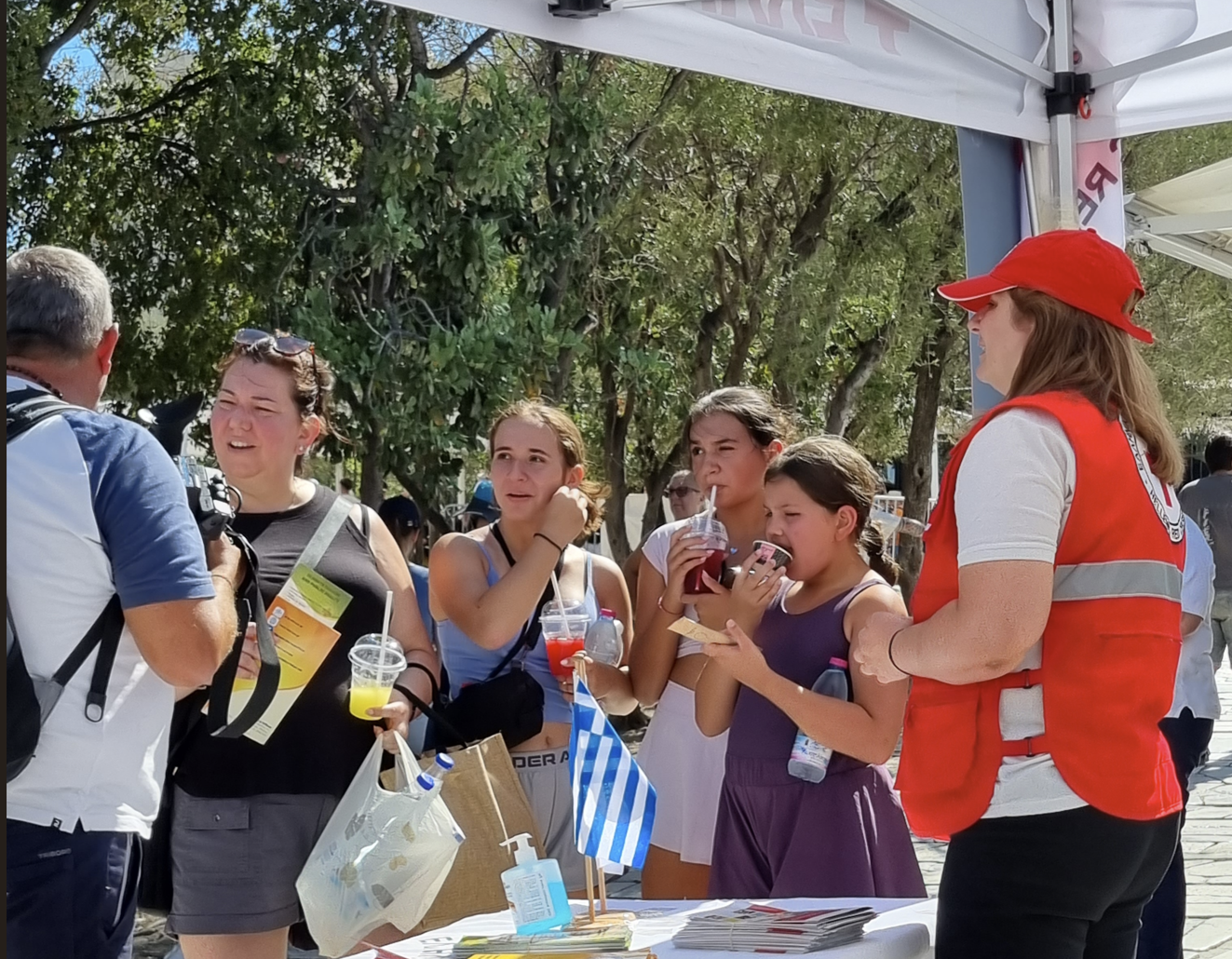 Με επιτυχία πραγματοποιήθηκε σήμερα (17/7) η μεγάλη δράση υποστήριξης των επισκεπτών της Ακρόπολης λόγω καύσωνα από τον Ελληνικό Ερυθρό Σταυρό, προσφέροντας στους χιλιάδες επισκέπτες στιγμές δροσιάς, Πρώτες Βοήθειες αλλά και αναλυτική ενημέρωση για τους δυνητικούς κινδύνους που απορρέουν από τις υψηλές θερμοκρασίες.