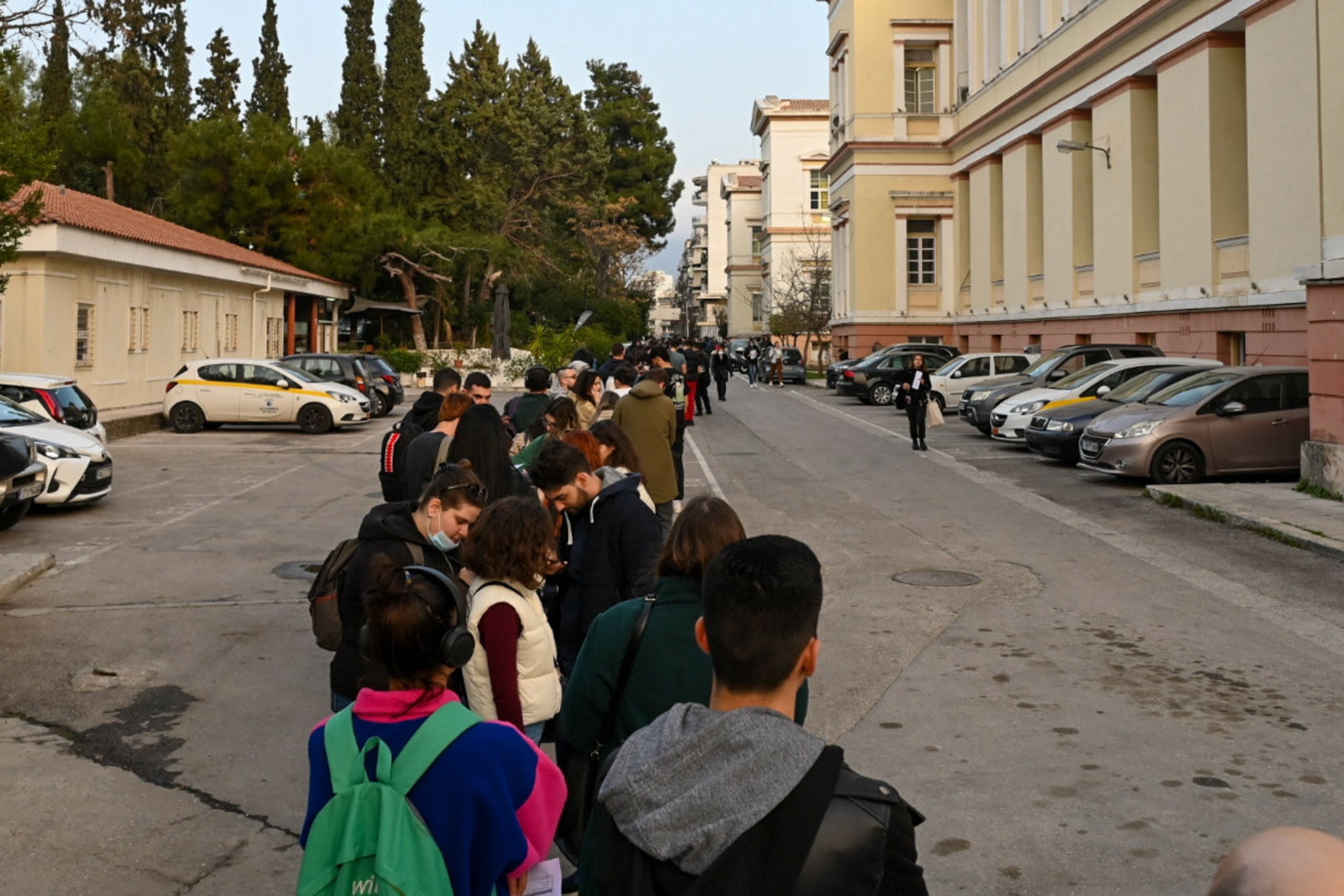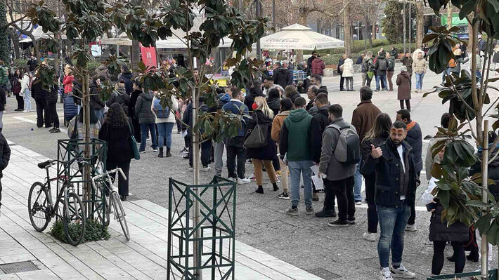 Στην Πλατεία της Λάρισας δημιουργήθηκαν τεράστιες ουρές από ανθρώπους όλων των ηλικιών που περίμεναν καρτερικά να αιμοδοτήσουν για τους τραυματίες των Τεμπών.