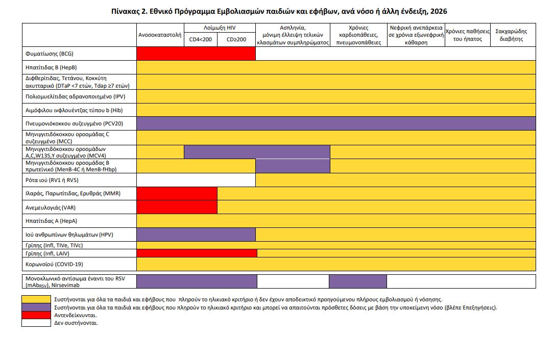 Δείτε ΕΔΩ ολόκληρο το Εθνικό Πρόγραμμα Εμβολιασμών Παιδιών και Εφήβων για το 2026