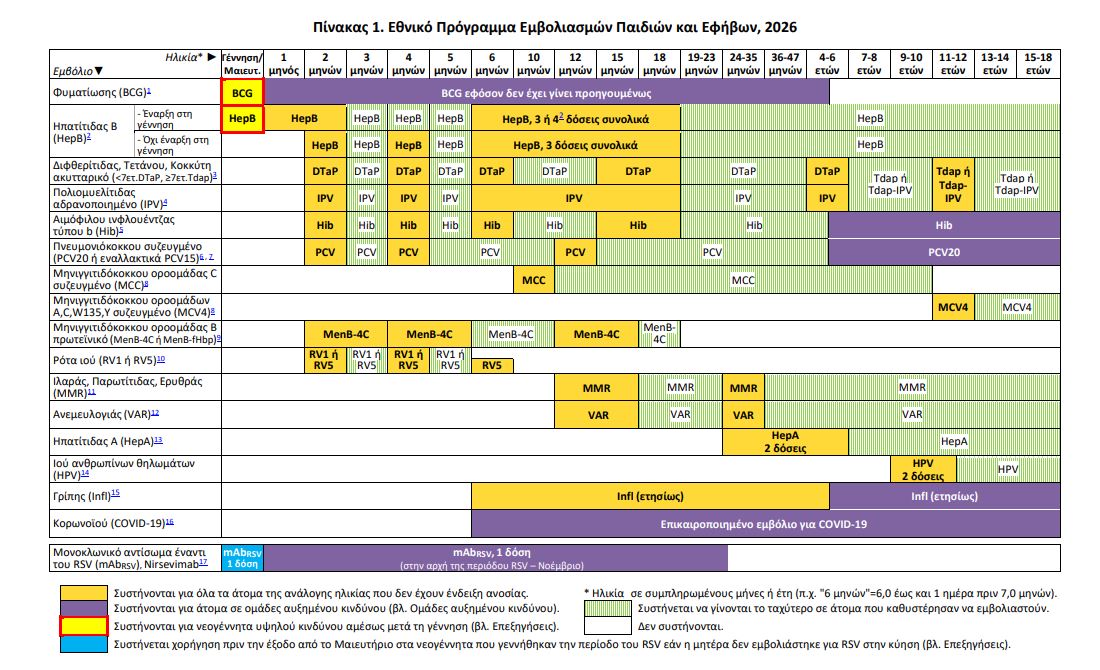 Εθνικό Πρόγραμμα Εμβολιασμών Παιδιών και Εφήβων 2026: Τι ισχύει για το εμβόλιο RSV στα νεογέννητα