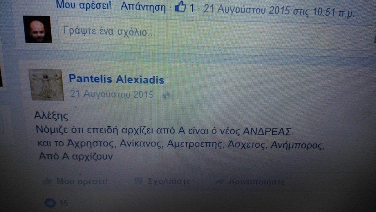 Ο κ. Αλεξιάδης προέβη το περασμένο καλοκαίρι σε ιδιαίτερα επικριτικούς χαρακτηρισμούς τόσο για την κυβέρνηση του ΣΥΡΙΖΑ, όσο και για τον ίδιο τον πρωθυπουργό. Και το facebook δεν...ξεχνάει!